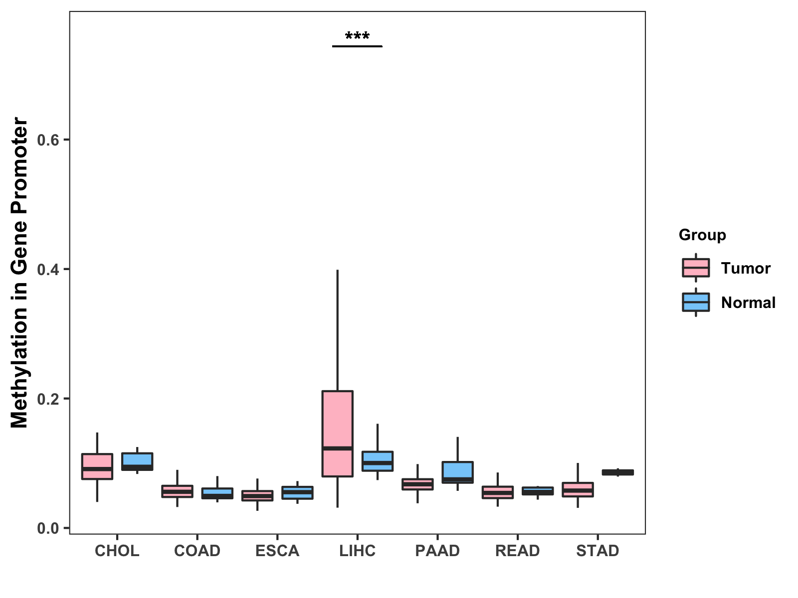 Boxplot of All Gastrointestinal Cancer ( * : 0.01-0.05 , ** : 0.005-0.01 , *** : 0.0001-0.005 , **** : < 0.0001 ) |