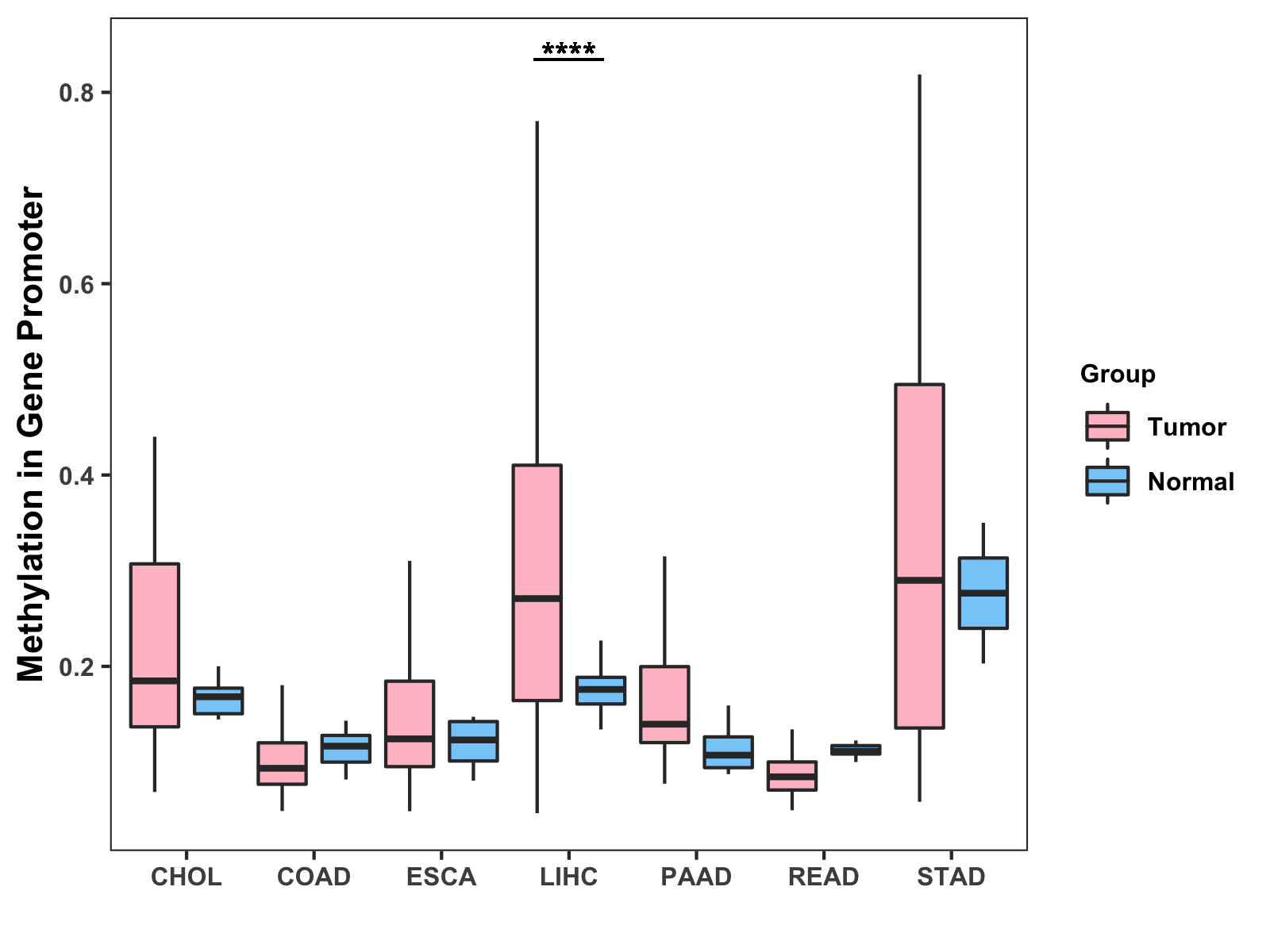 Methylation Level in Colon Cancer MODERATE Methylation Level in Rectum Cancer MODERATE