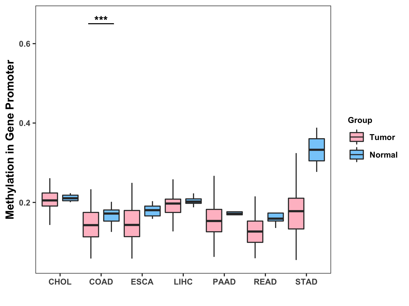 Boxplot of All Gastrointestinal Cancer ( * : 0.01-0.05 , ** : 0.005-0.01 , *** : 0.0001-0.005 , **** : < 0.0001 ) |