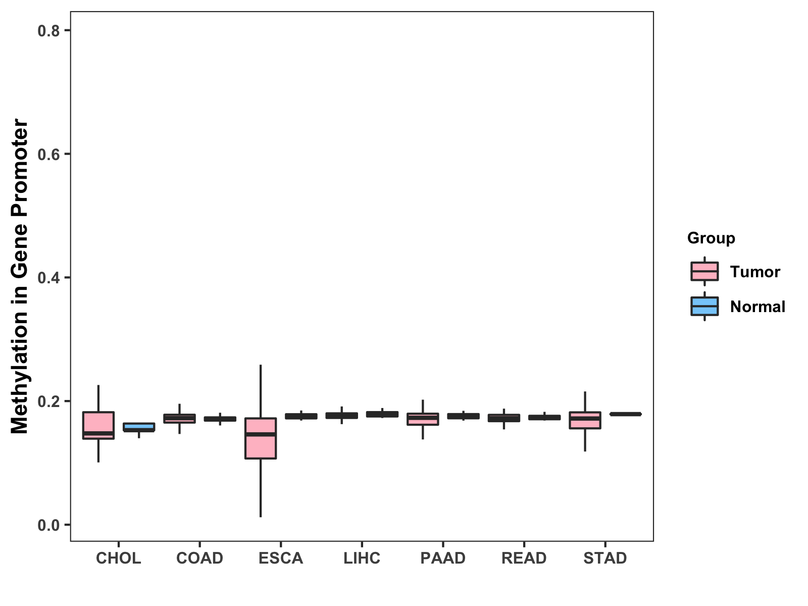 Methylation Level in Colon Cancer MODERATE Methylation Level in Rectum Cancer MODERATE