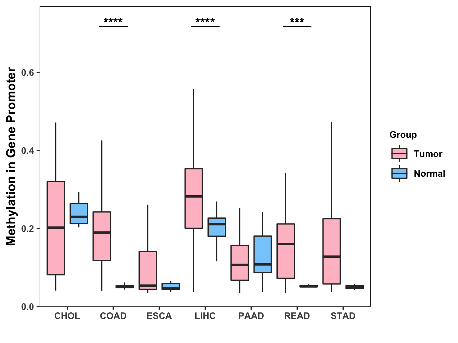 Methylation Level in Colon Cancer HIGH Methylation Level in Rectum Cancer HIGH