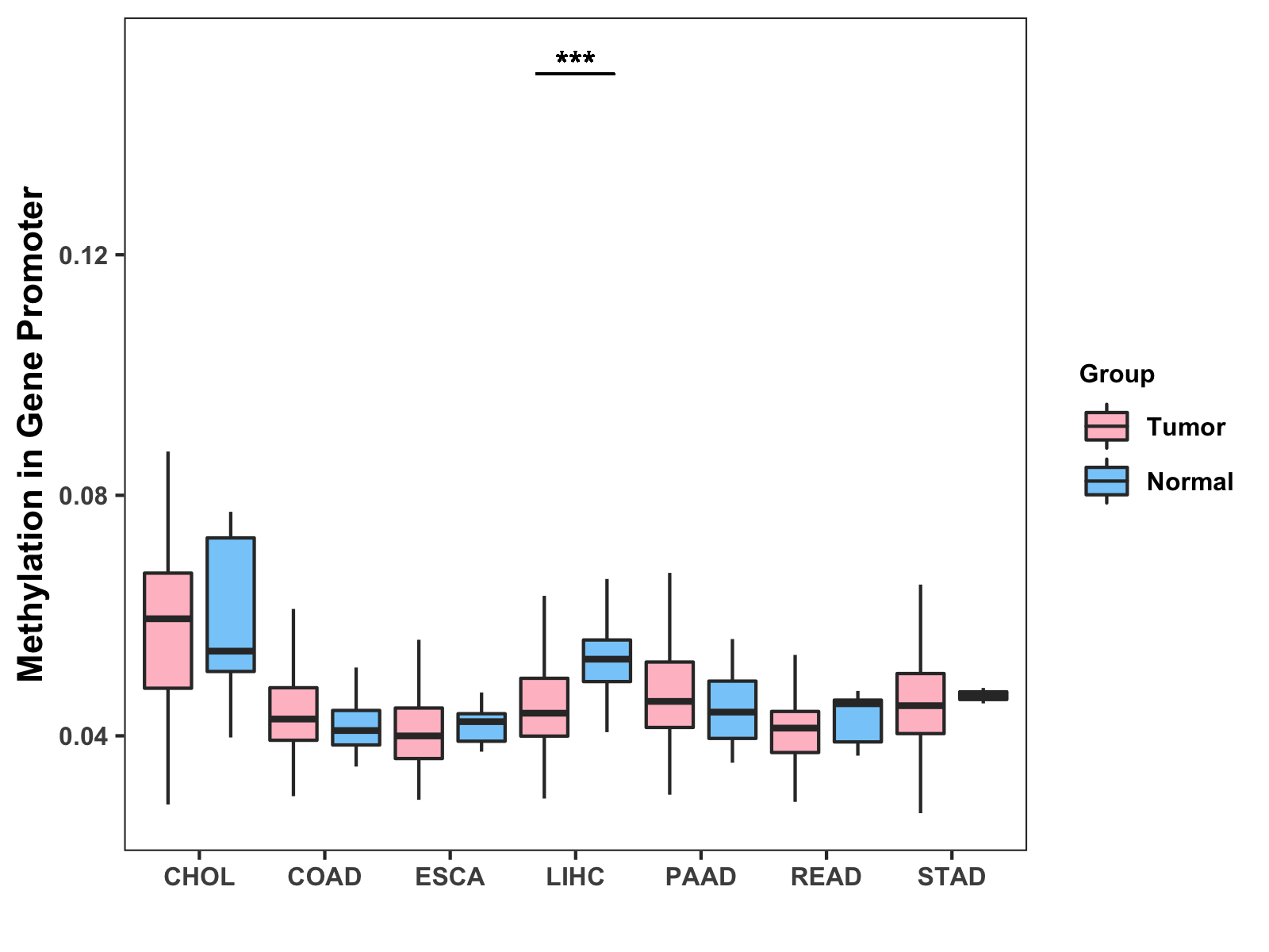 Boxplot of All Gastrointestinal Cancer ( * : 0.01-0.05 , ** : 0.005-0.01 , *** : 0.0001-0.005 , **** : < 0.0001 ) |