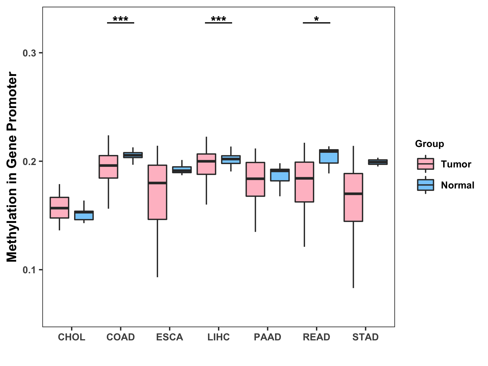 Methylation Level in Colon Cancer MODERATE Methylation Level in Rectum Cancer MODERATE