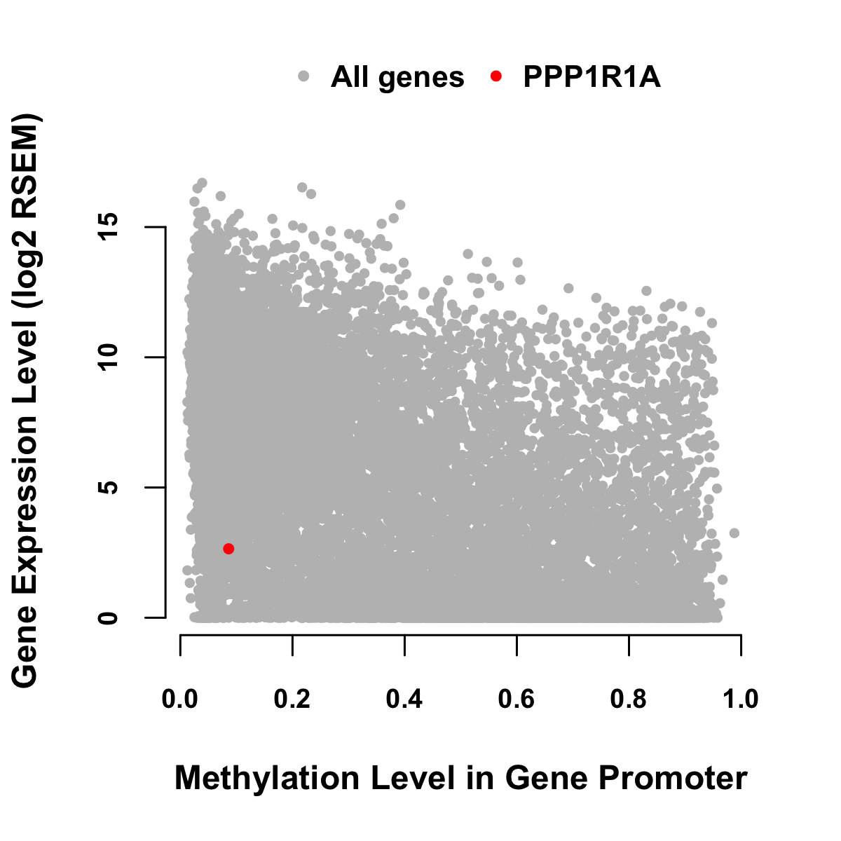 Expression-Methylation Scatter Plot in Colon Cancer Expression-Methylation Scatter Plot in Rectum Cancer