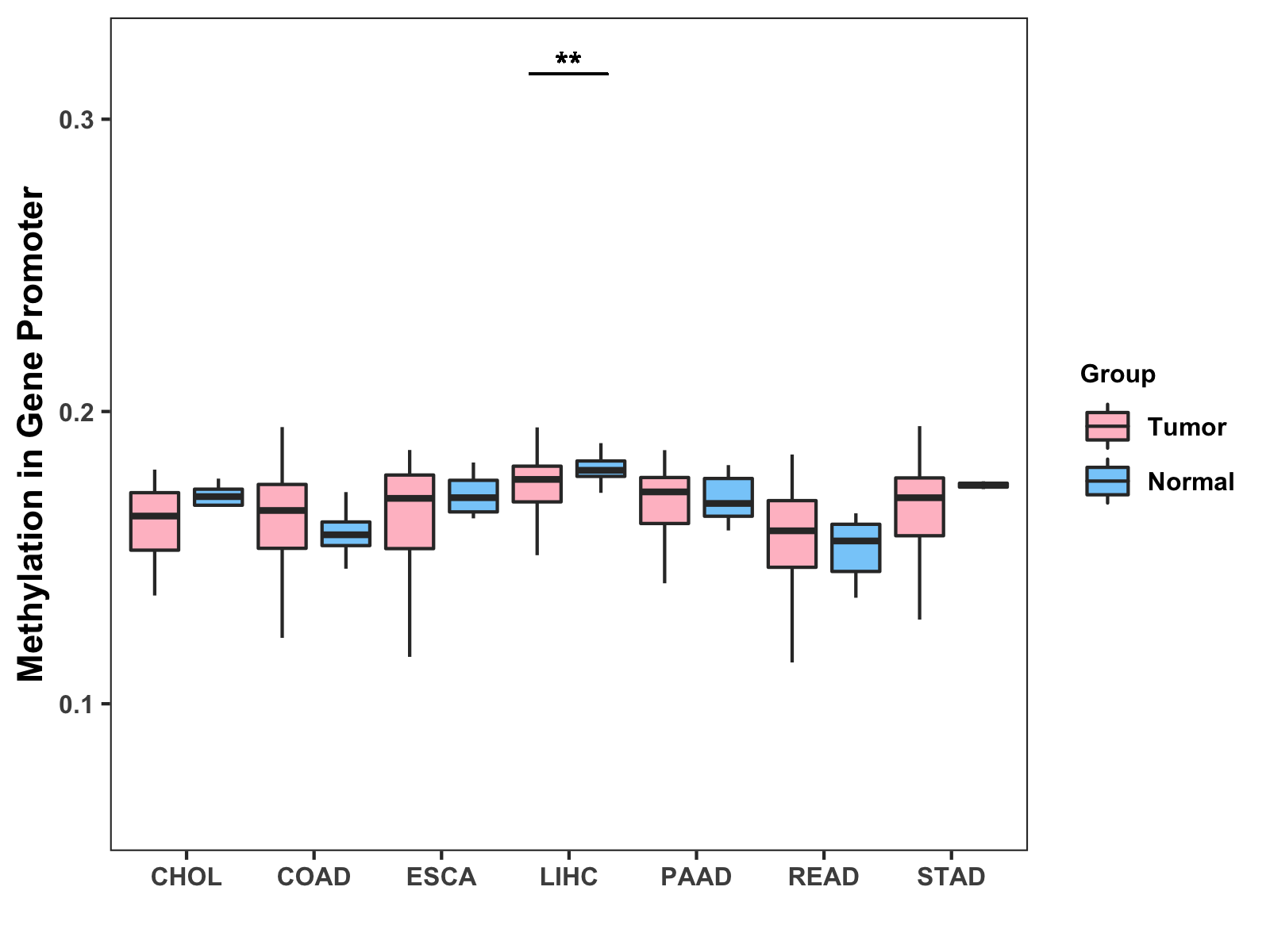 Methylation Level in Colon Cancer MODERATE Methylation Level in Rectum Cancer MODERATE