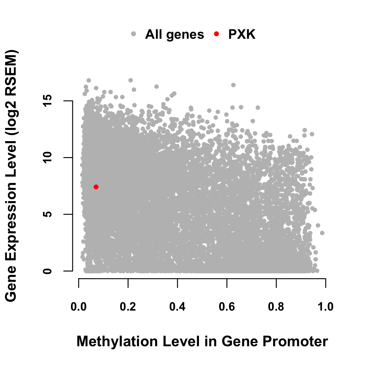 | Box Plot in Pancreatic Cancer | Expression-Methylation Scatter Plot in Pancreatic Cancer |