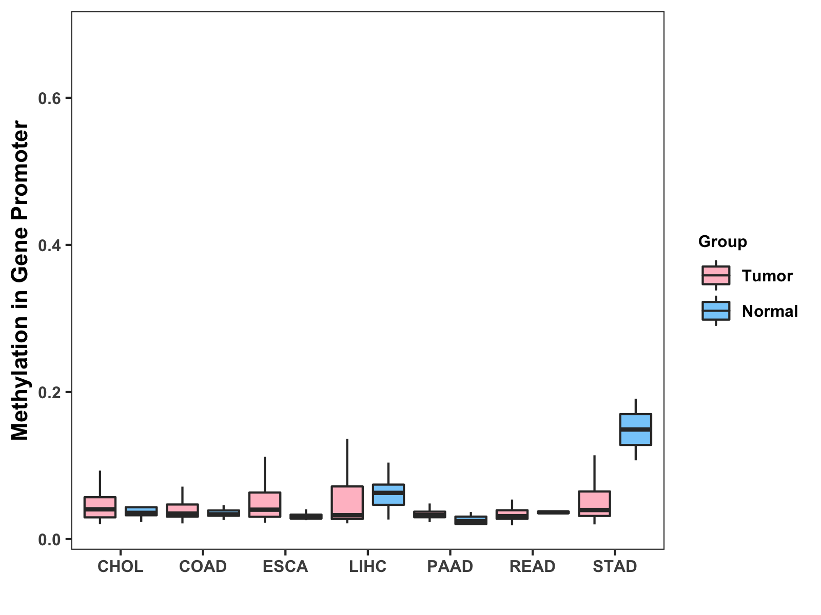| Box Plot in Stomach Cancer | Expression-Methylation Scatter Plot in Stomach Cancer |