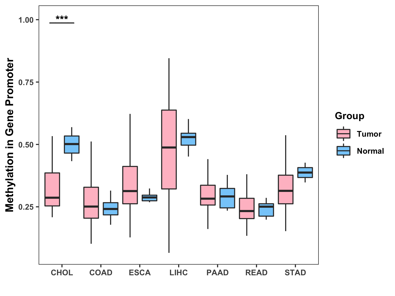 Boxplot of All Gastrointestinal Cancer ( * : 0.01-0.05 , ** : 0.005-0.01 , *** : 0.0001-0.005 , **** : < 0.0001 ) |