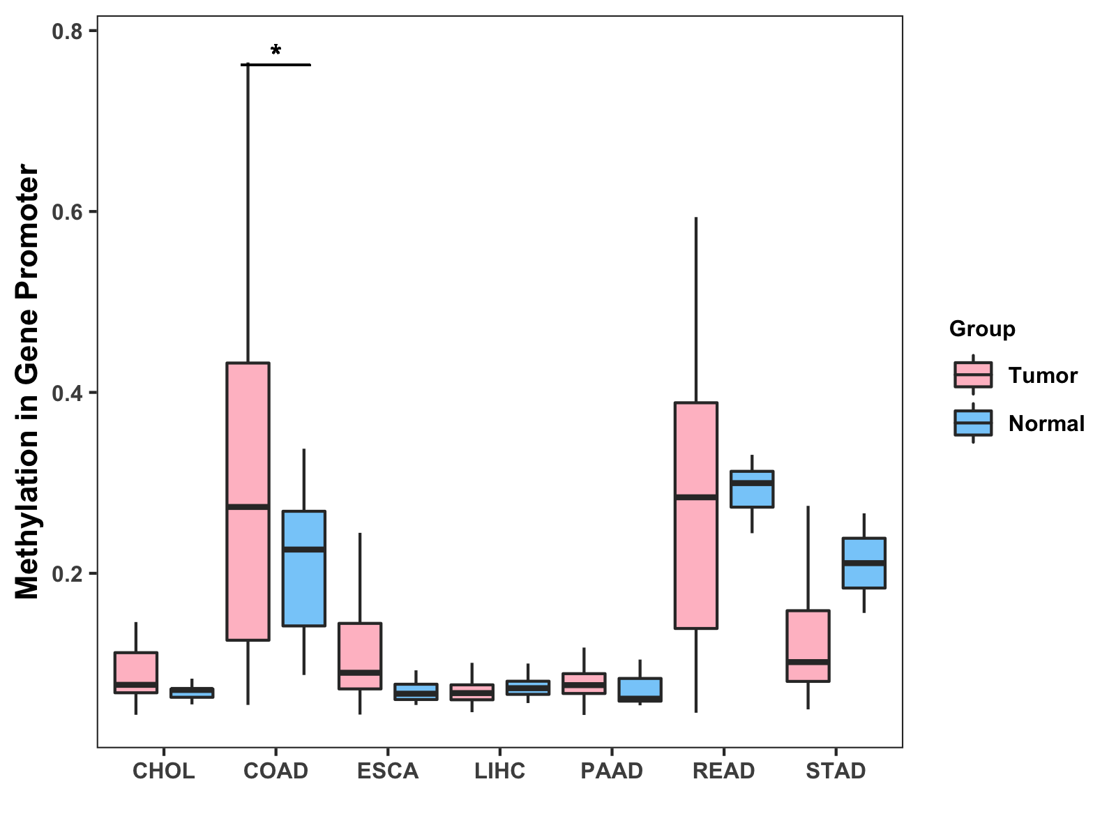 Boxplot of All Gastrointestinal Cancer ( * : 0.01-0.05 , ** : 0.005-0.01 , *** : 0.0001-0.005 , **** : < 0.0001 ) |