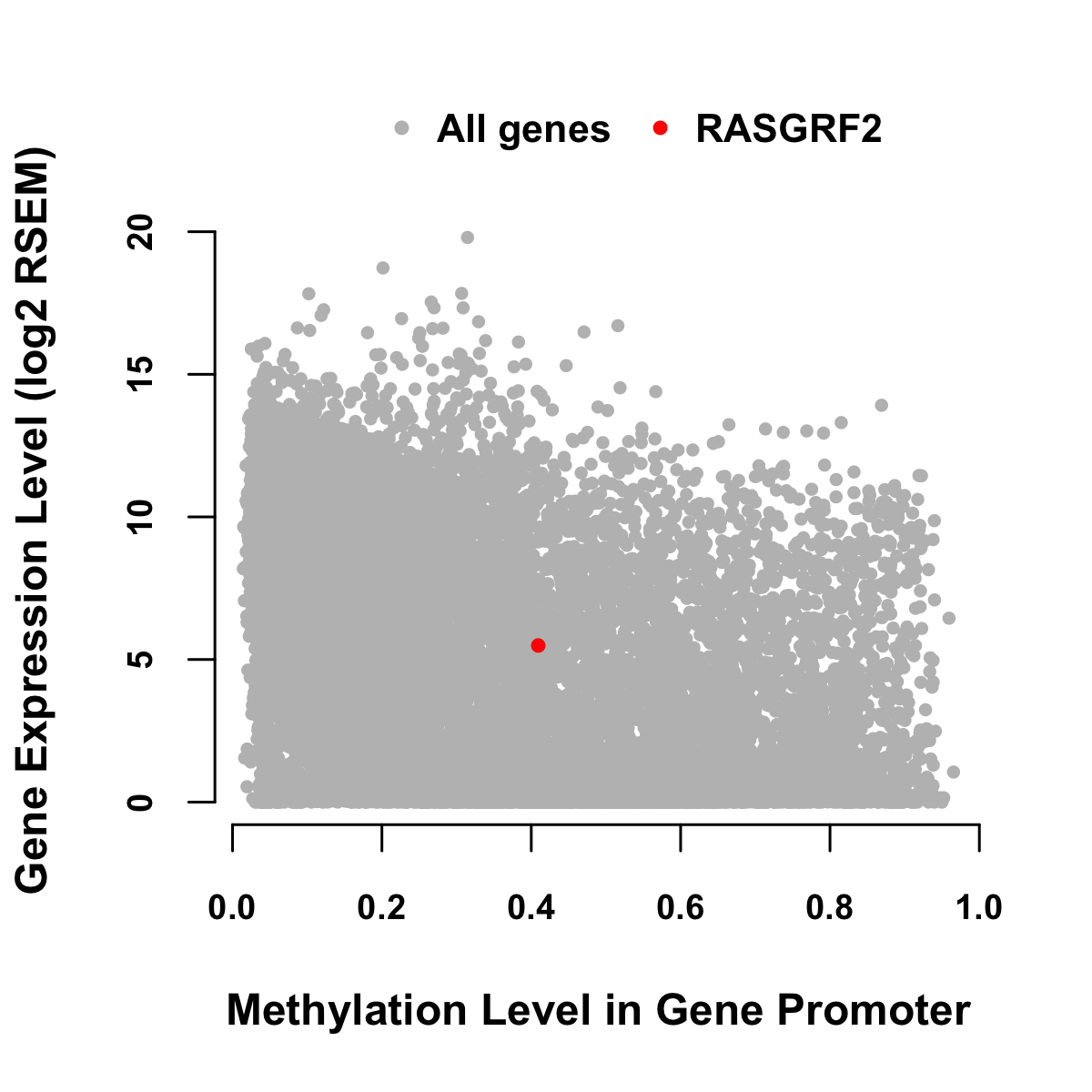 | Box Plot in Liver Cancer | Expression-Methylation Scatter Plot in Liver Cancer |