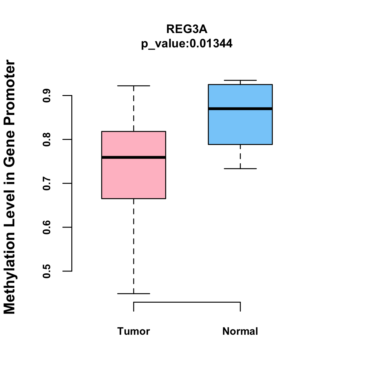 | Box Plot in Pancreatic Cancer | Expression-Methylation Scatter Plot in Pancreatic Cancer |