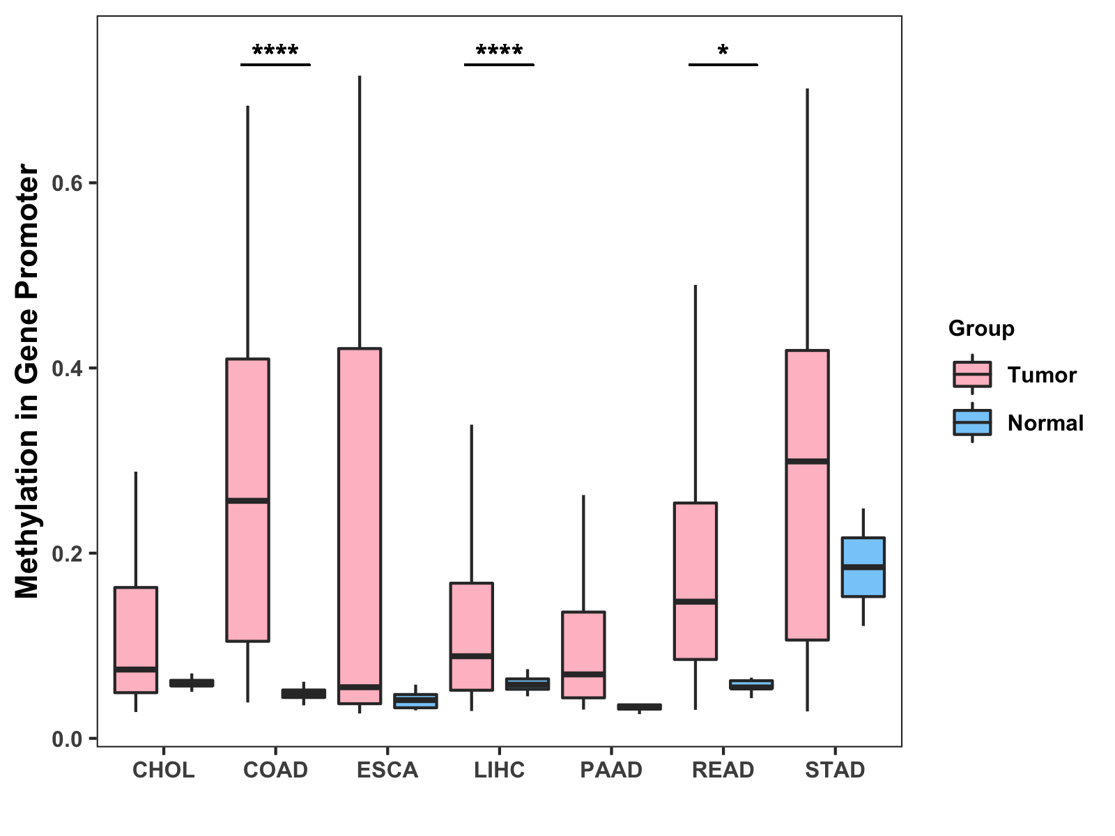 Methylation Level in Colon Cancer HIGH Methylation Level in Rectum Cancer MODERATE