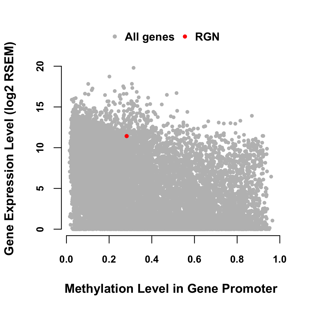 | Box Plot in Liver Cancer | Expression-Methylation Scatter Plot in Liver Cancer |