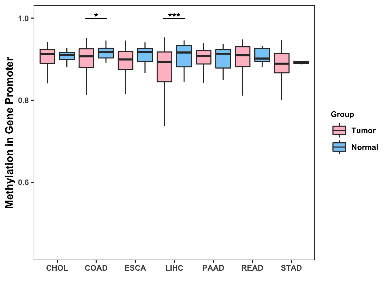 Methylation Level in Colon Cancer MODERATE Methylation Level in Rectum Cancer MODERATE