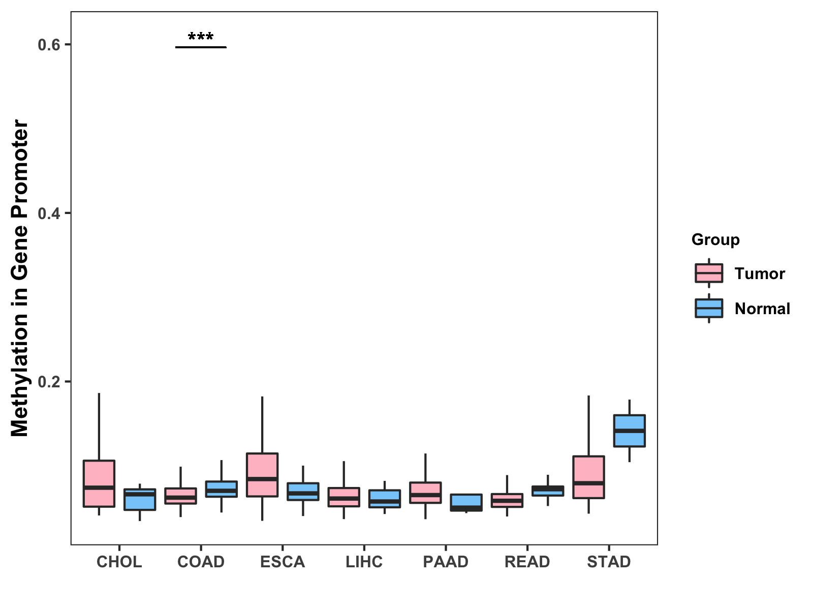 Boxplot of All Gastrointestinal Cancer ( * : 0.01-0.05 , ** : 0.005-0.01 , *** : 0.0001-0.005 , **** : < 0.0001 ) |