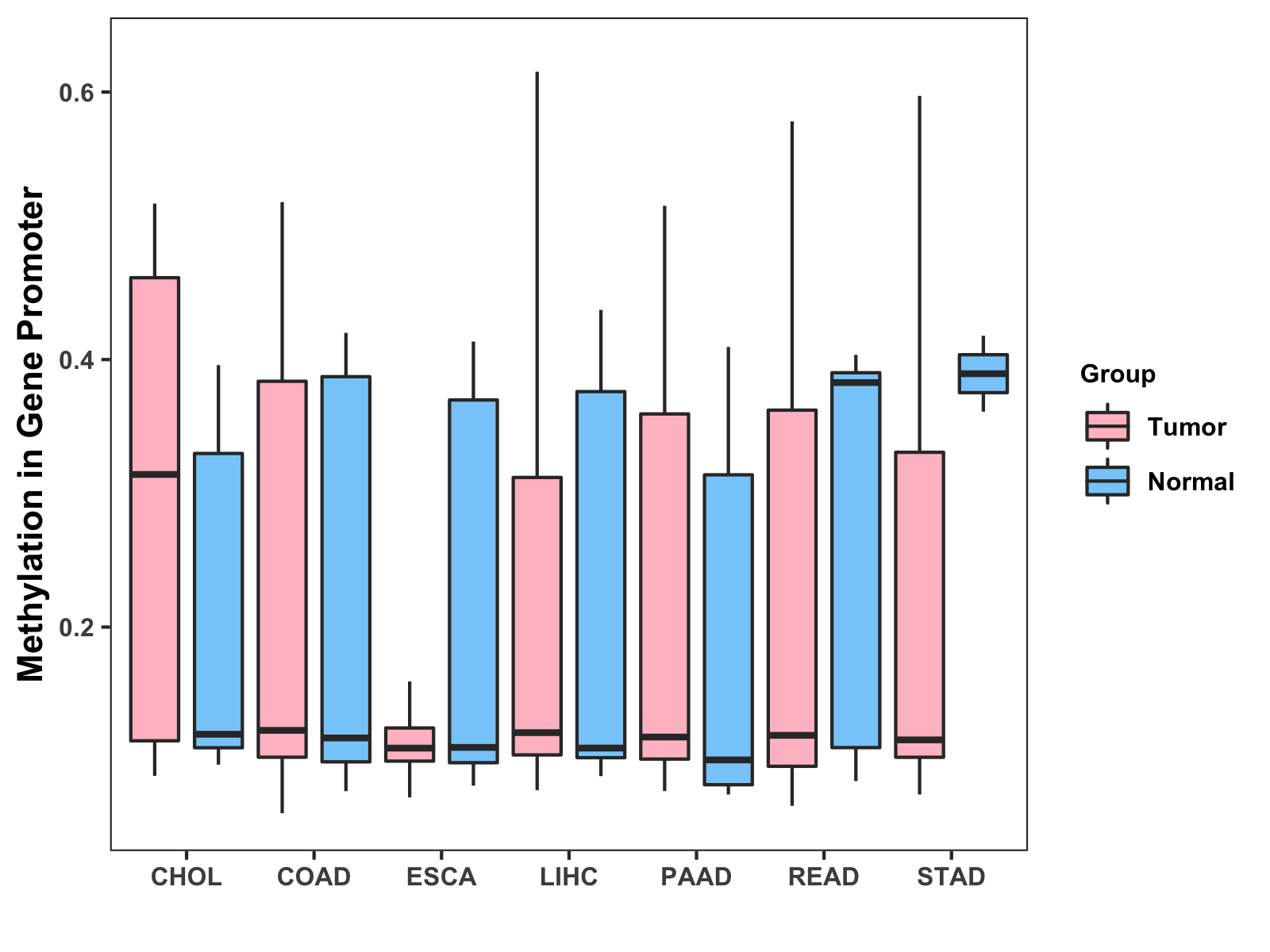 Boxplot of All Gastrointestinal Cancer ( * : 0.01-0.05 , ** : 0.005-0.01 , *** : 0.0001-0.005 , **** : < 0.0001 ) |