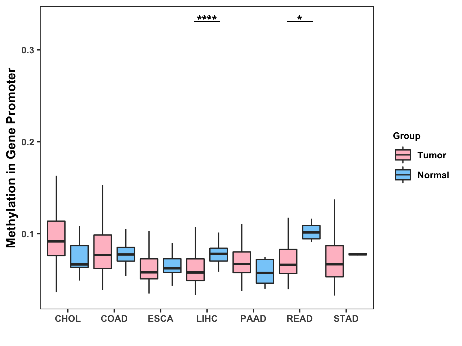 Methylation Level in Colon Cancer MODERATE Methylation Level in Rectum Cancer MODERATE