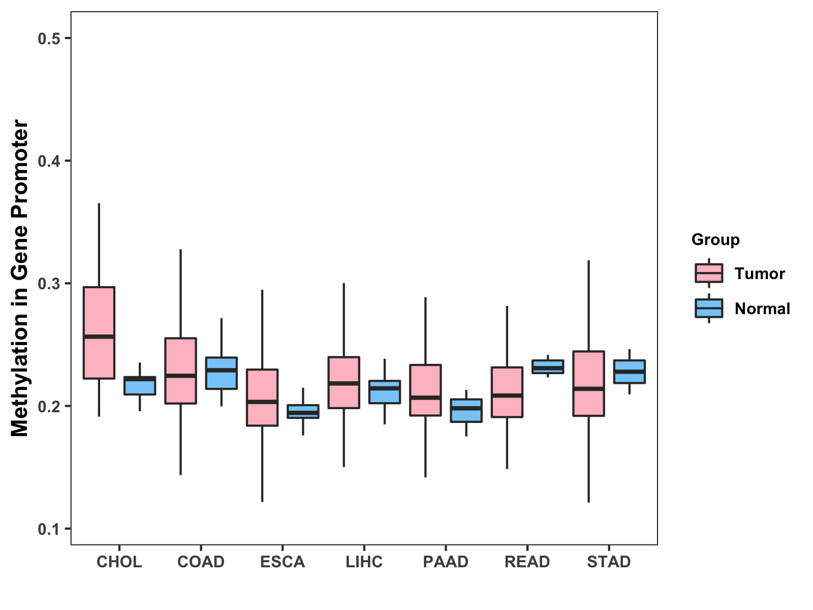 Boxplot of All Gastrointestinal Cancer ( * : 0.01-0.05 , ** : 0.005-0.01 , *** : 0.0001-0.005 , **** : < 0.0001 ) |