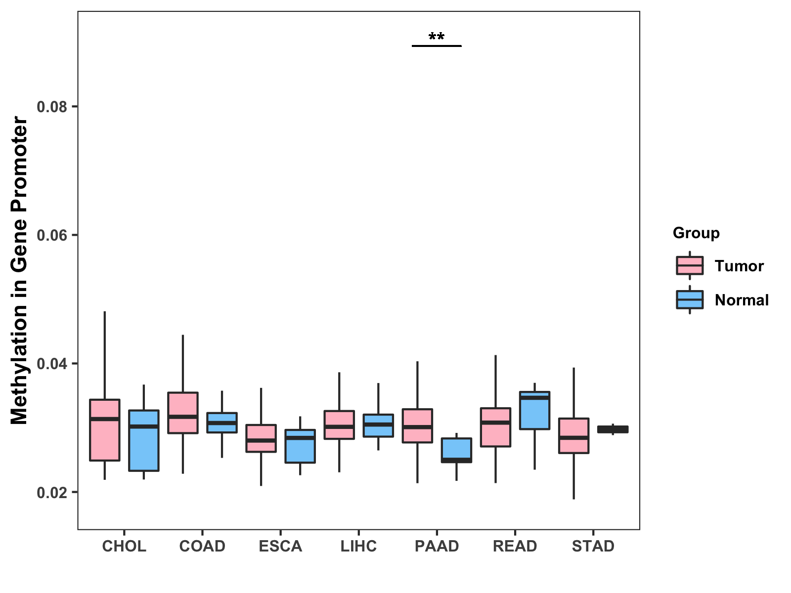 Boxplot of All Gastrointestinal Cancer ( * : 0.01-0.05 , ** : 0.005-0.01 , *** : 0.0001-0.005 , **** : < 0.0001 ) |