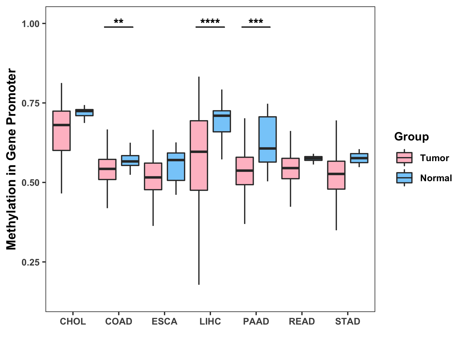 Methylation Level in Colon Cancer MODERATE Methylation Level in Rectum Cancer MODERATE