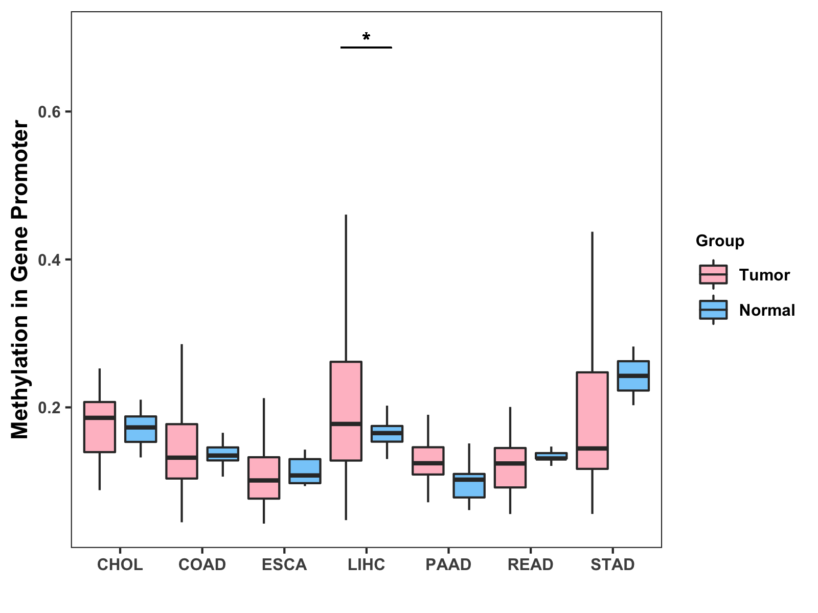 Boxplot of All Gastrointestinal Cancer ( * : 0.01-0.05 , ** : 0.005-0.01 , *** : 0.0001-0.005 , **** : < 0.0001 ) |