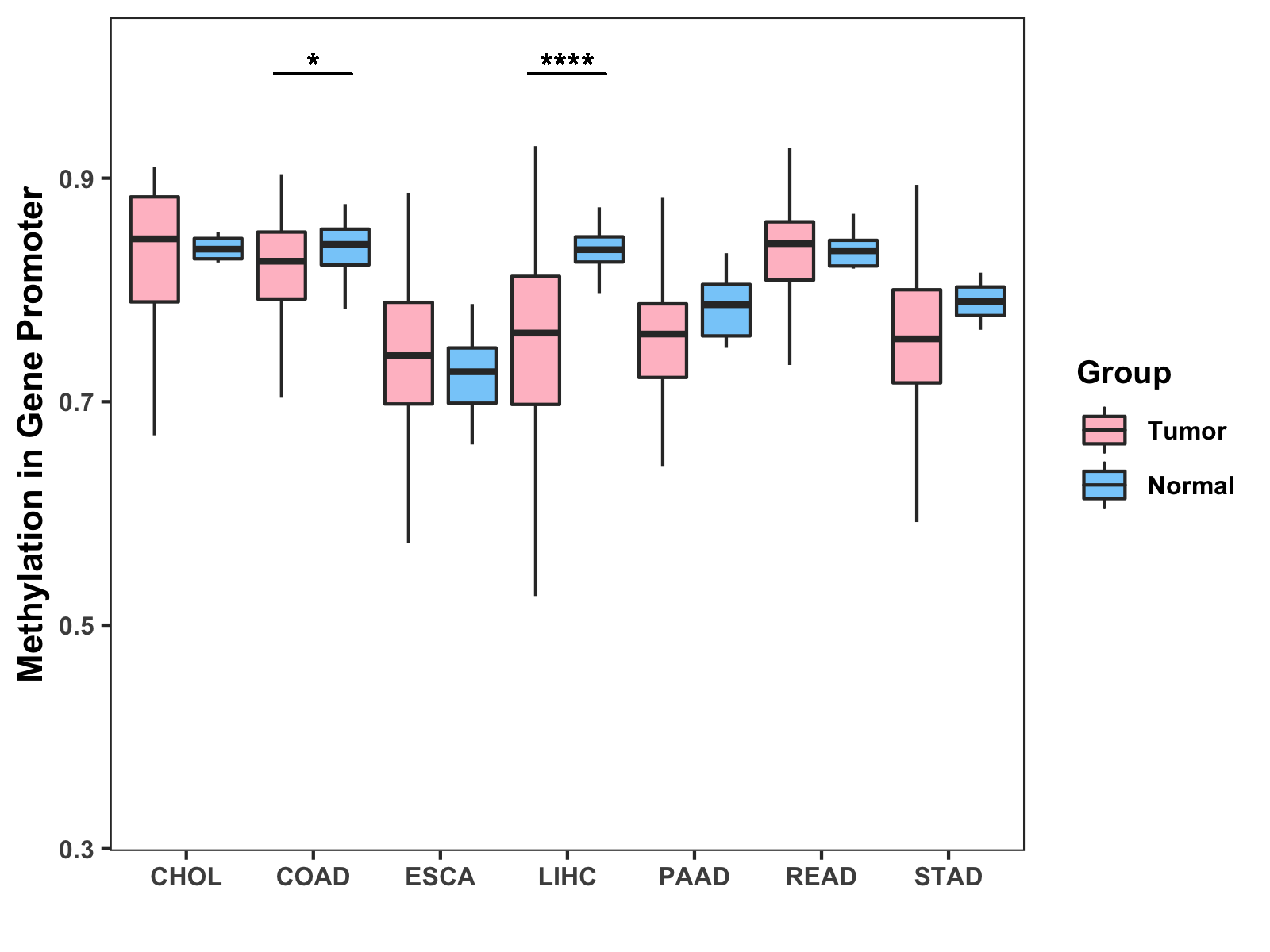 Methylation Level in Colon Cancer MODERATE Methylation Level in Rectum Cancer MODERATE