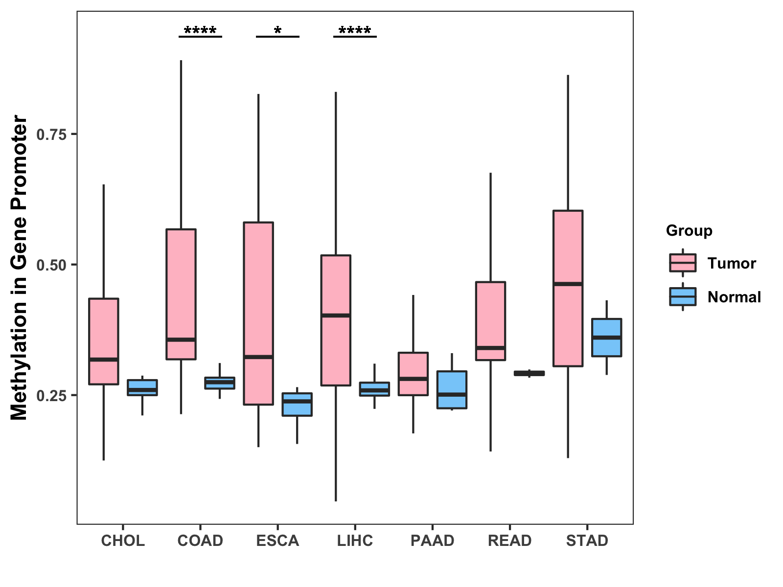 Methylation Level in Colon Cancer MODERATE Methylation Level in Rectum Cancer MODERATE