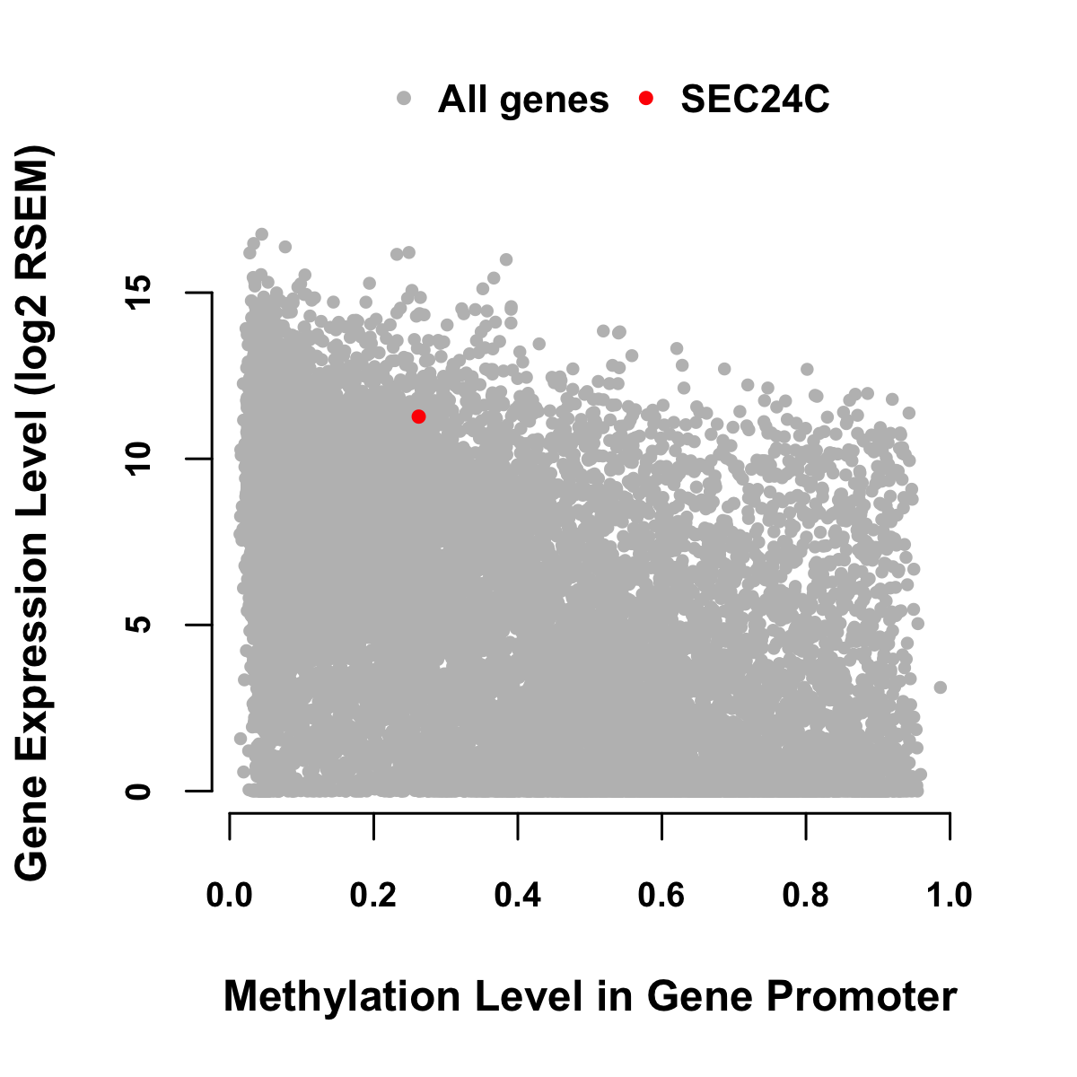 Expression-Methylation Scatter Plot in Colon Cancer Expression-Methylation Scatter Plot in Rectum Cancer