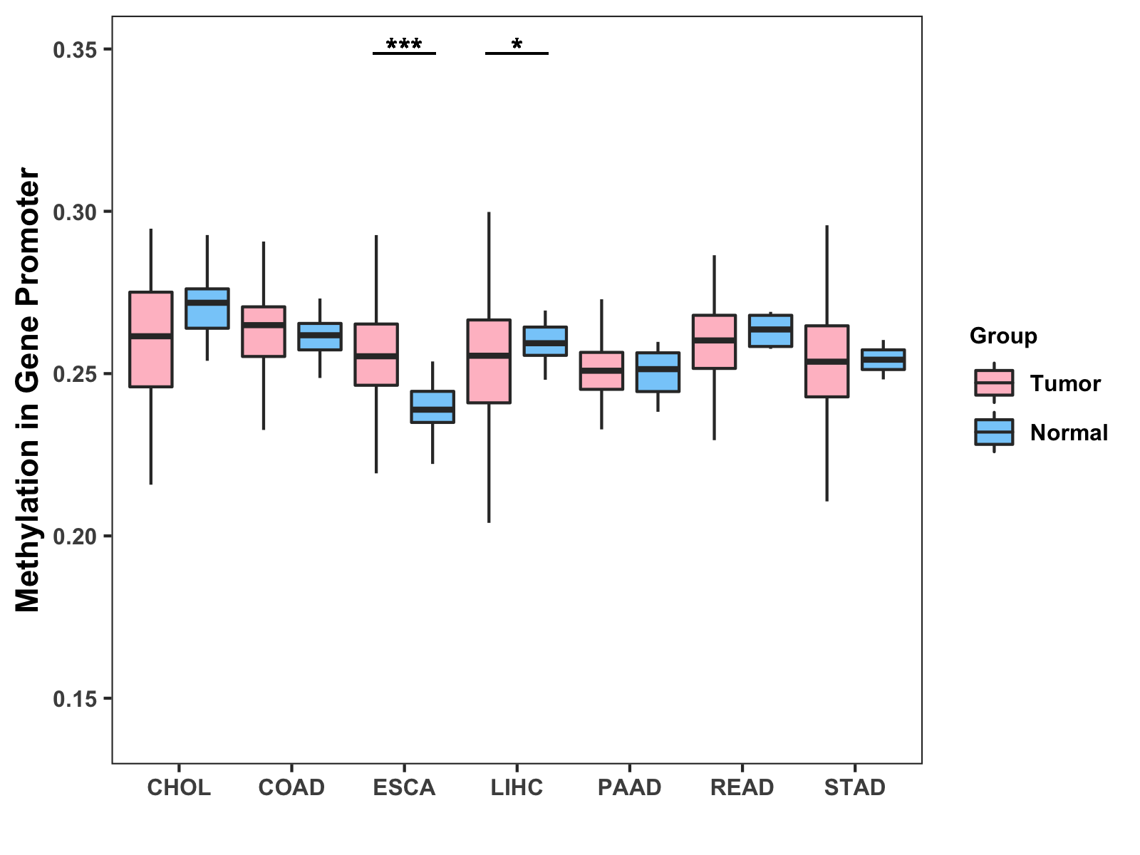 Methylation Level in Colon Cancer MODERATE Methylation Level in Rectum Cancer MODERATE