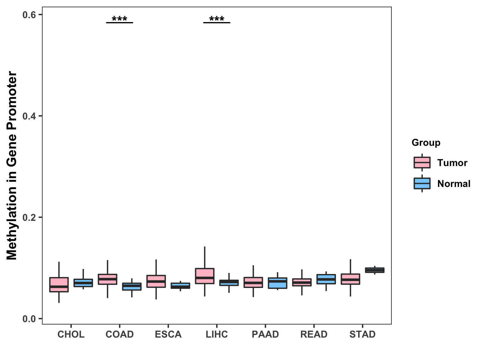 Boxplot of All Gastrointestinal Cancer ( * : 0.01-0.05 , ** : 0.005-0.01 , *** : 0.0001-0.005 , **** : < 0.0001 ) |