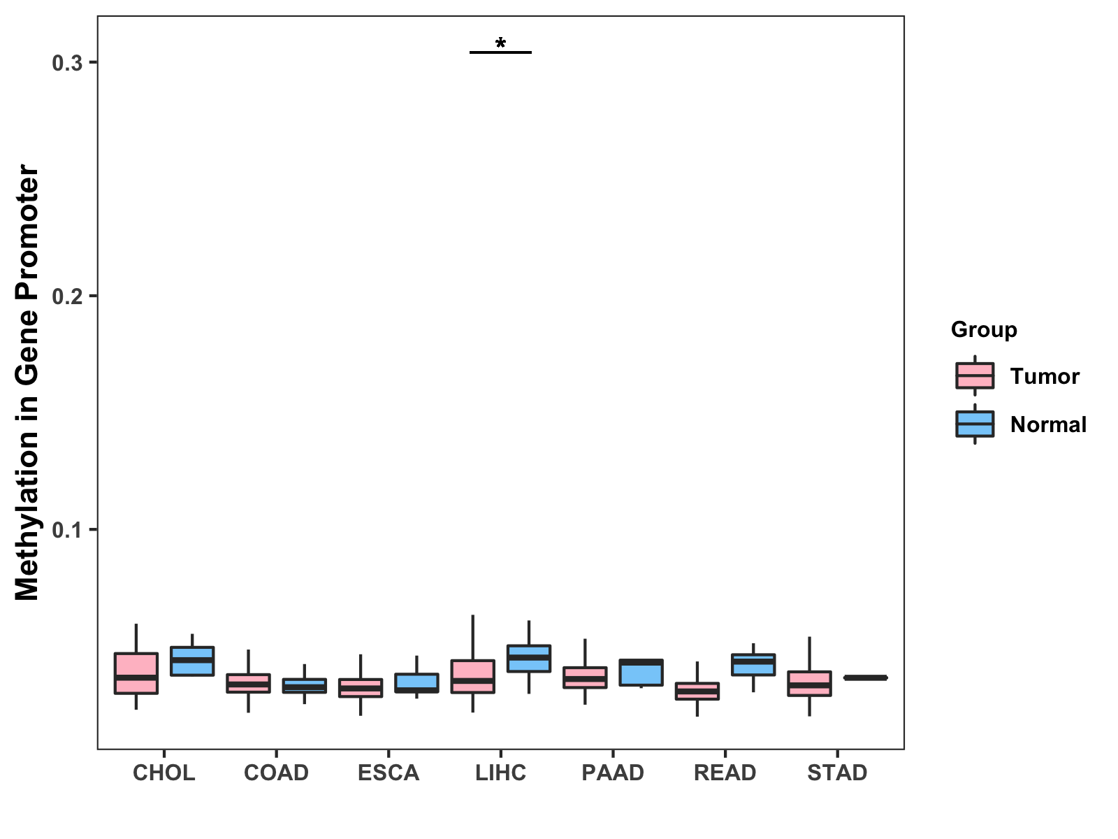Methylation Level in Colon Cancer MODERATE Methylation Level in Rectum Cancer MODERATE