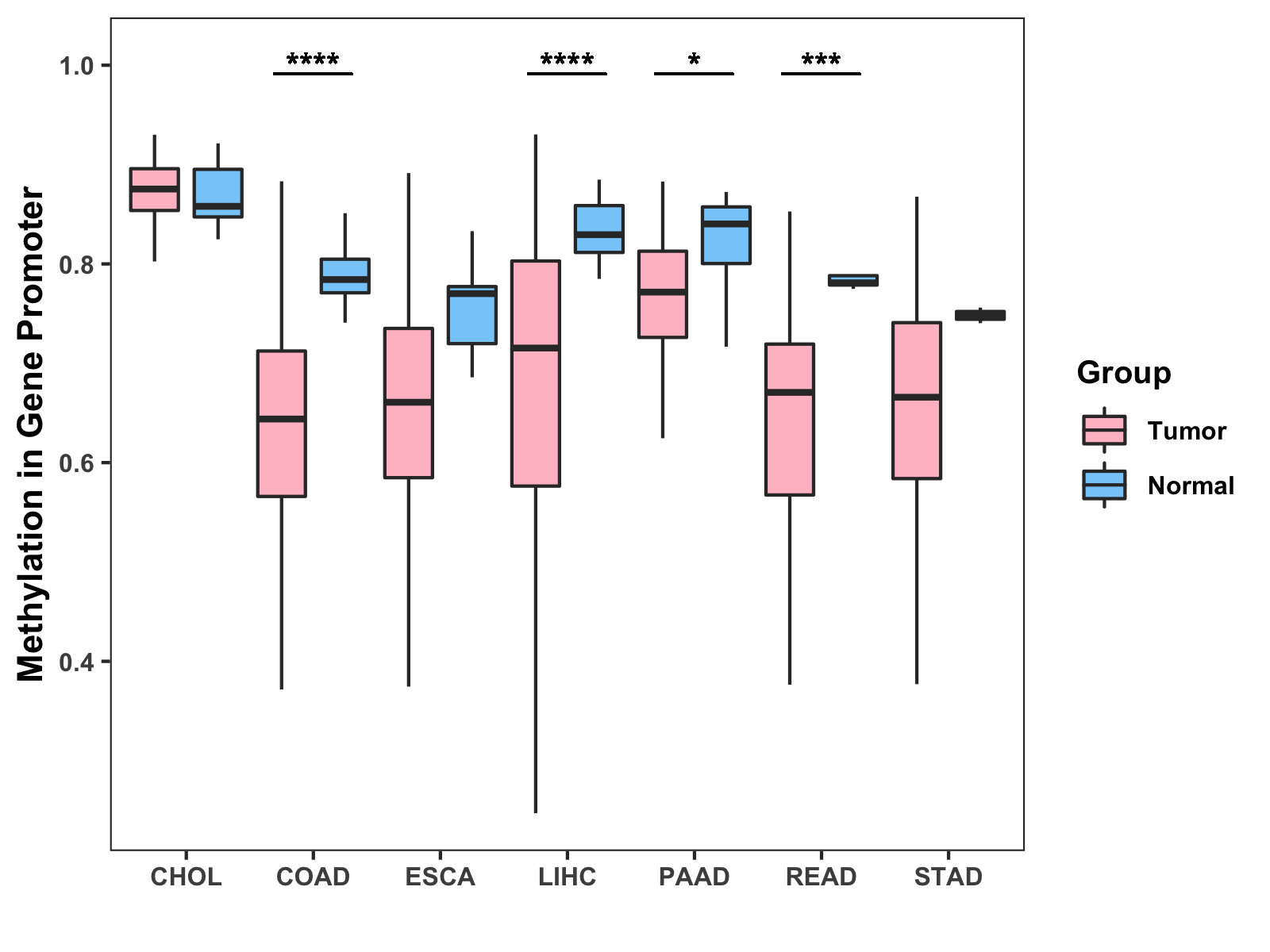 Methylation Level in Colon Cancer LOW Methylation Level in Rectum Cancer LOW