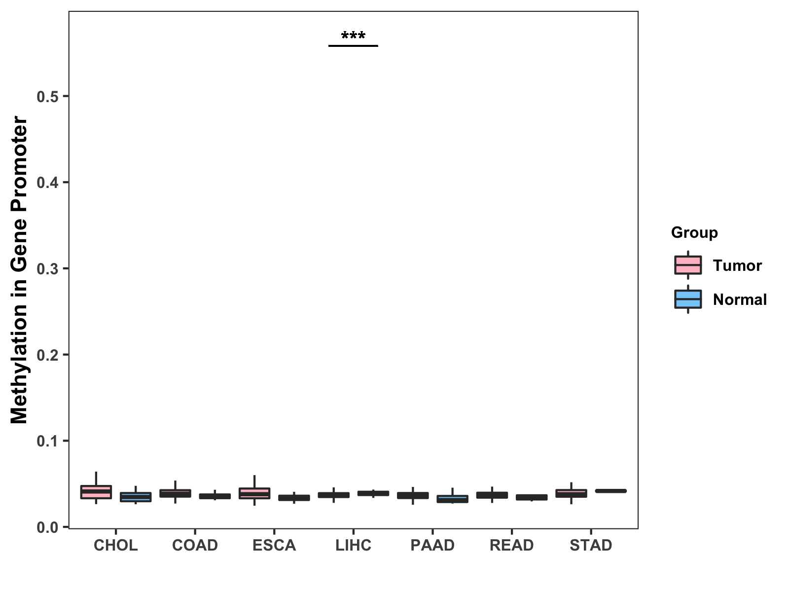 Boxplot of All Gastrointestinal Cancer ( * : 0.01-0.05 , ** : 0.005-0.01 , *** : 0.0001-0.005 , **** : < 0.0001 ) |