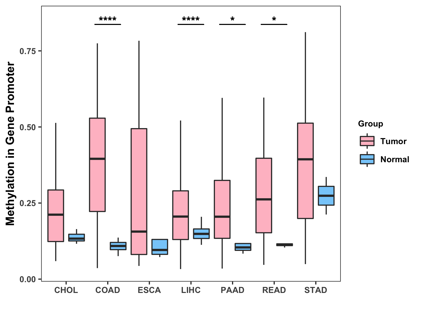 Methylation Level in Colon Cancer HIGH Methylation Level in Rectum Cancer HIGH