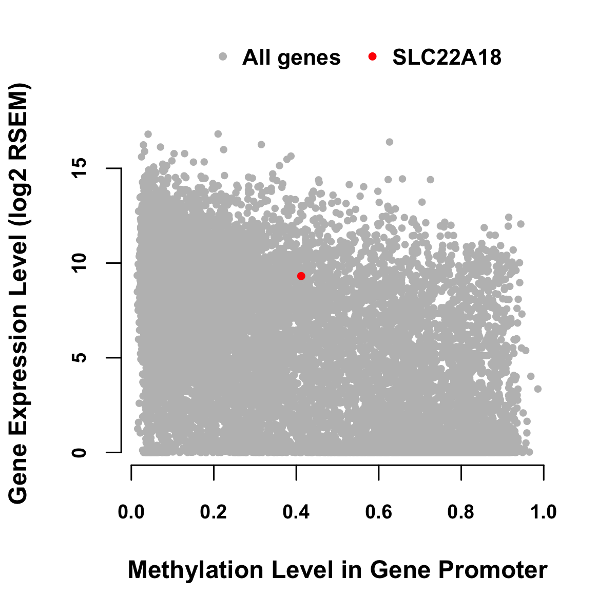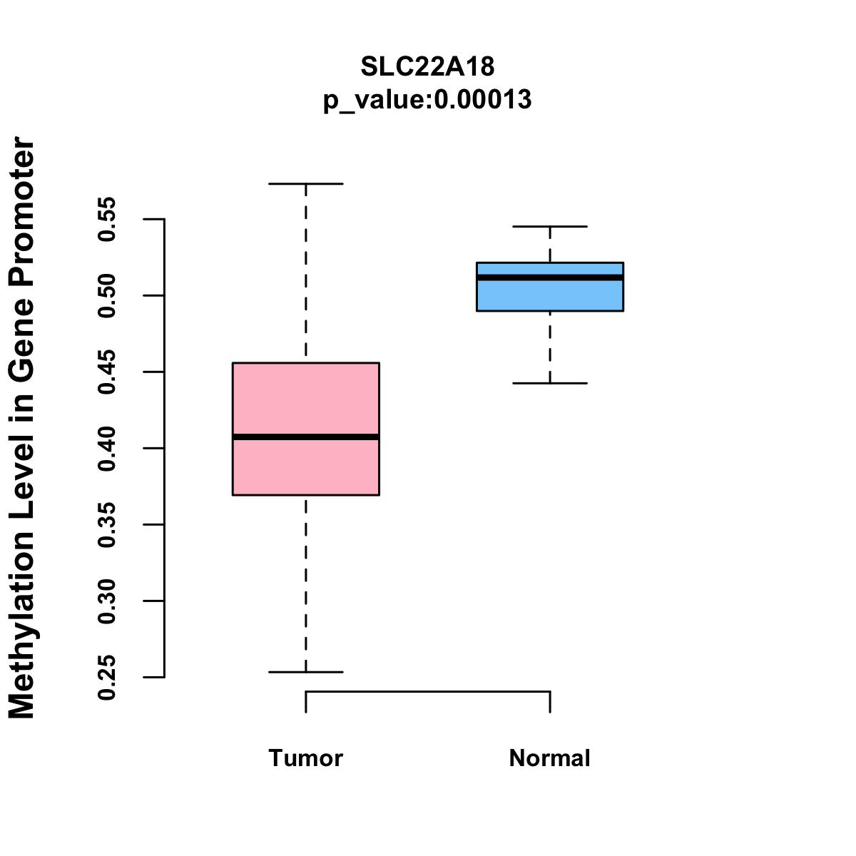 | Box Plot in Pancreatic Cancer | Expression-Methylation Scatter Plot in Pancreatic Cancer |