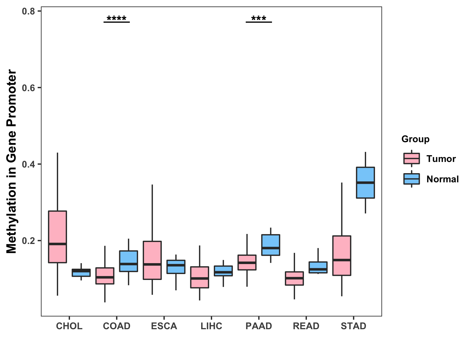 Methylation Level in Colon Cancer MODERATE Methylation Level in Rectum Cancer MODERATE