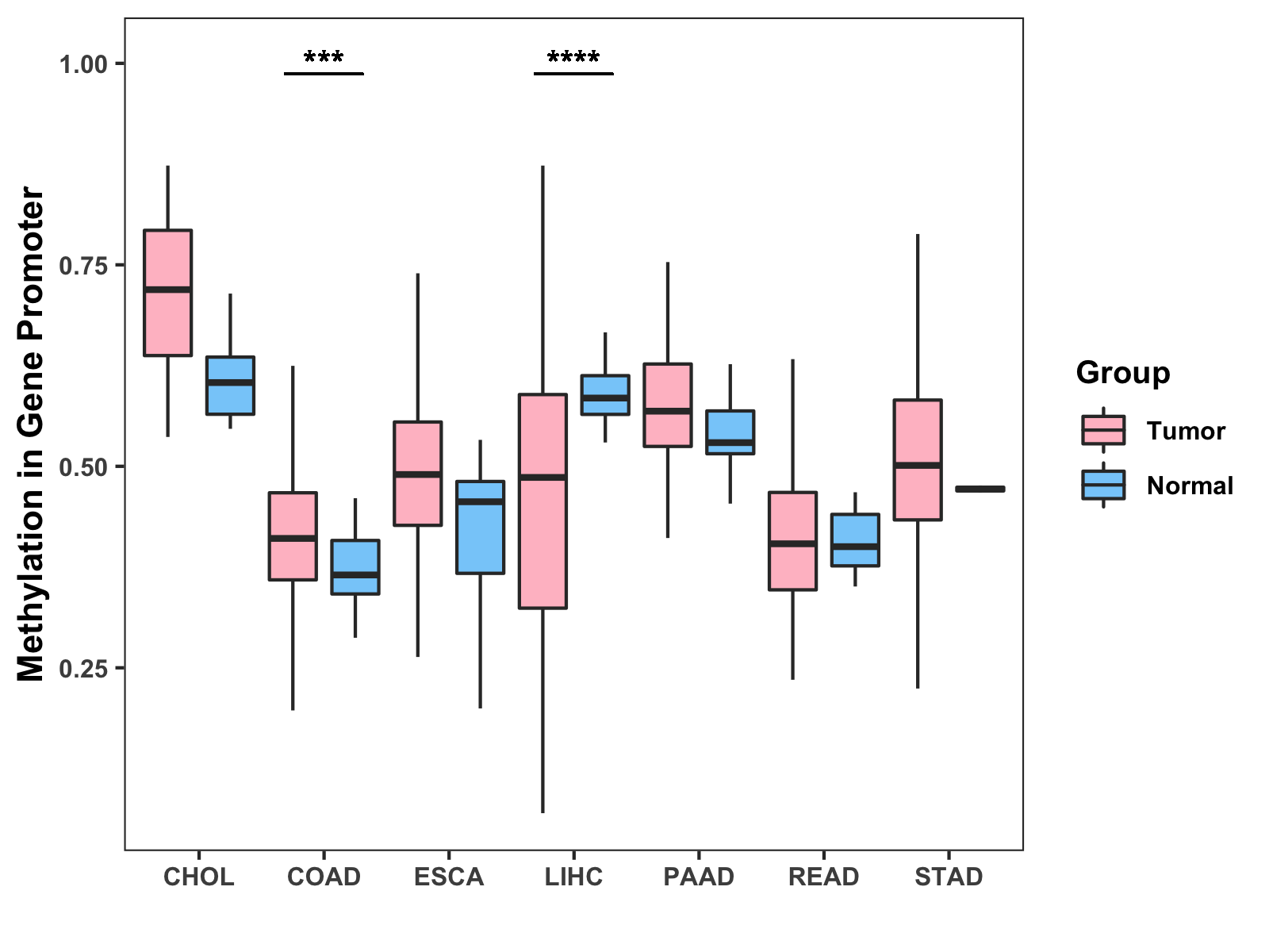 Methylation Level in Colon Cancer MODERATE Methylation Level in Rectum Cancer MODERATE