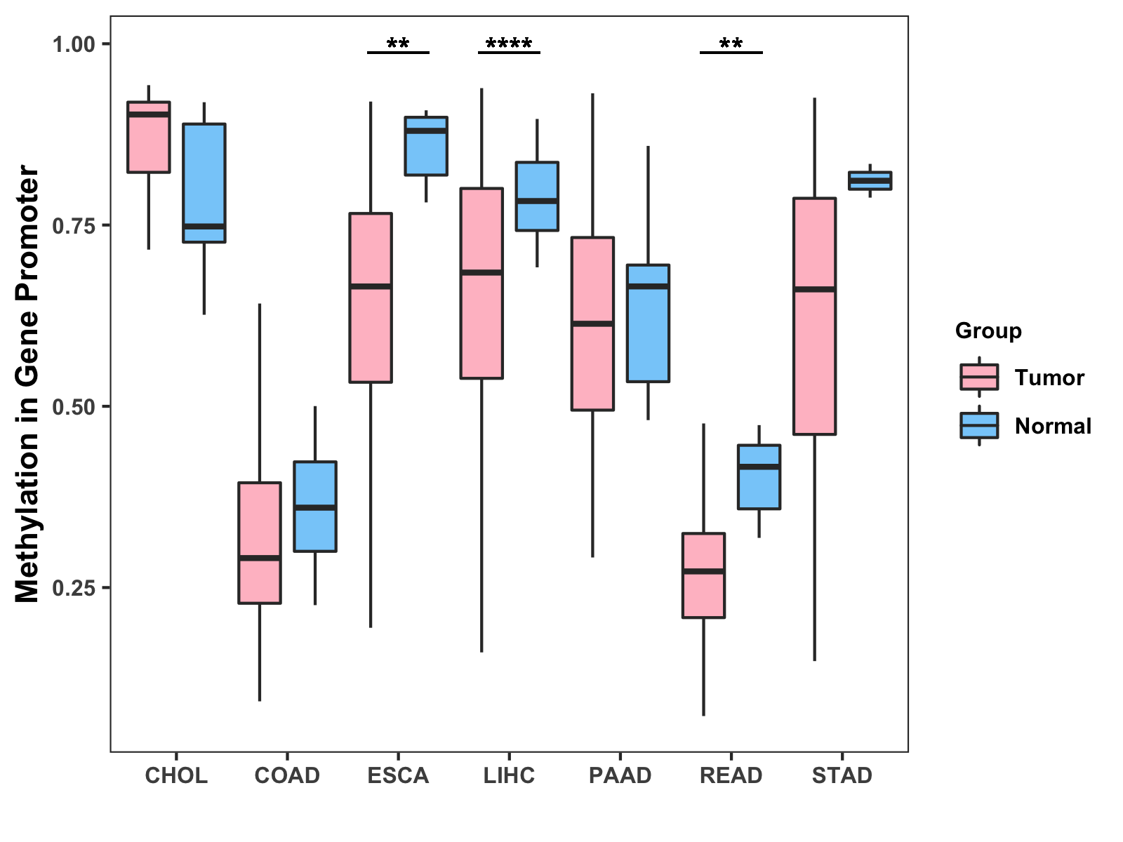 Methylation Level in Colon Cancer MODERATE Methylation Level in Rectum Cancer LOW