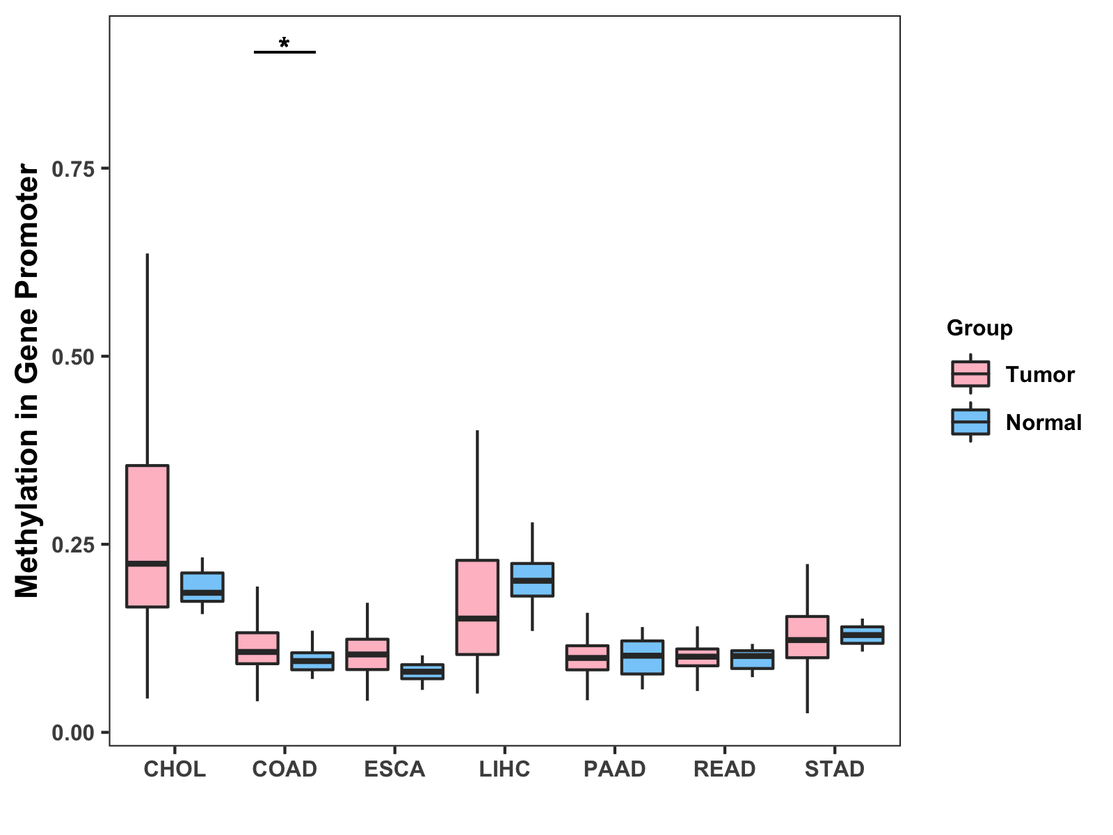 Methylation Level in Colon Cancer MODERATE Methylation Level in Rectum Cancer MODERATE