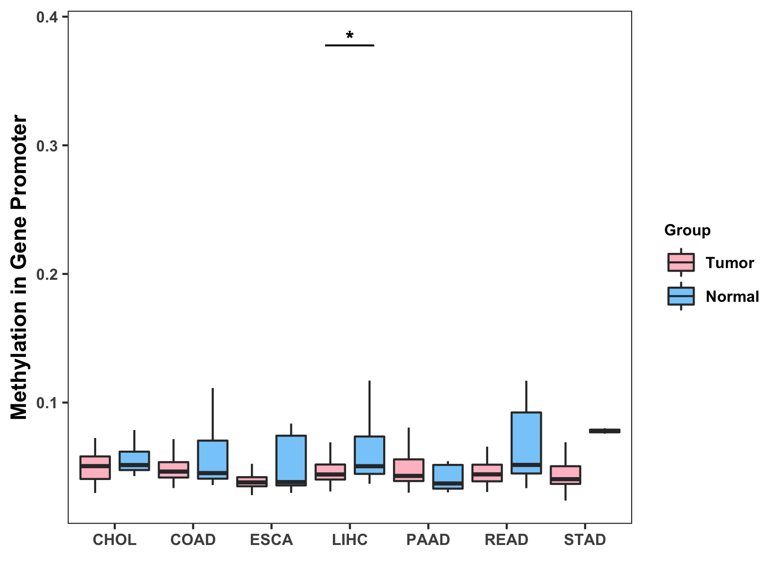 Boxplot of All Gastrointestinal Cancer ( * : 0.01-0.05 , ** : 0.005-0.01 , *** : 0.0001-0.005 , **** : < 0.0001 ) |