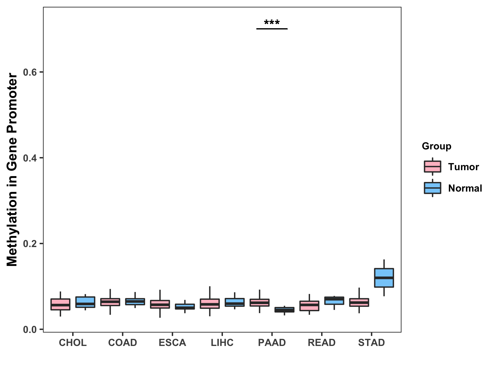Methylation Level in Colon Cancer MODERATE Methylation Level in Rectum Cancer MODERATE
