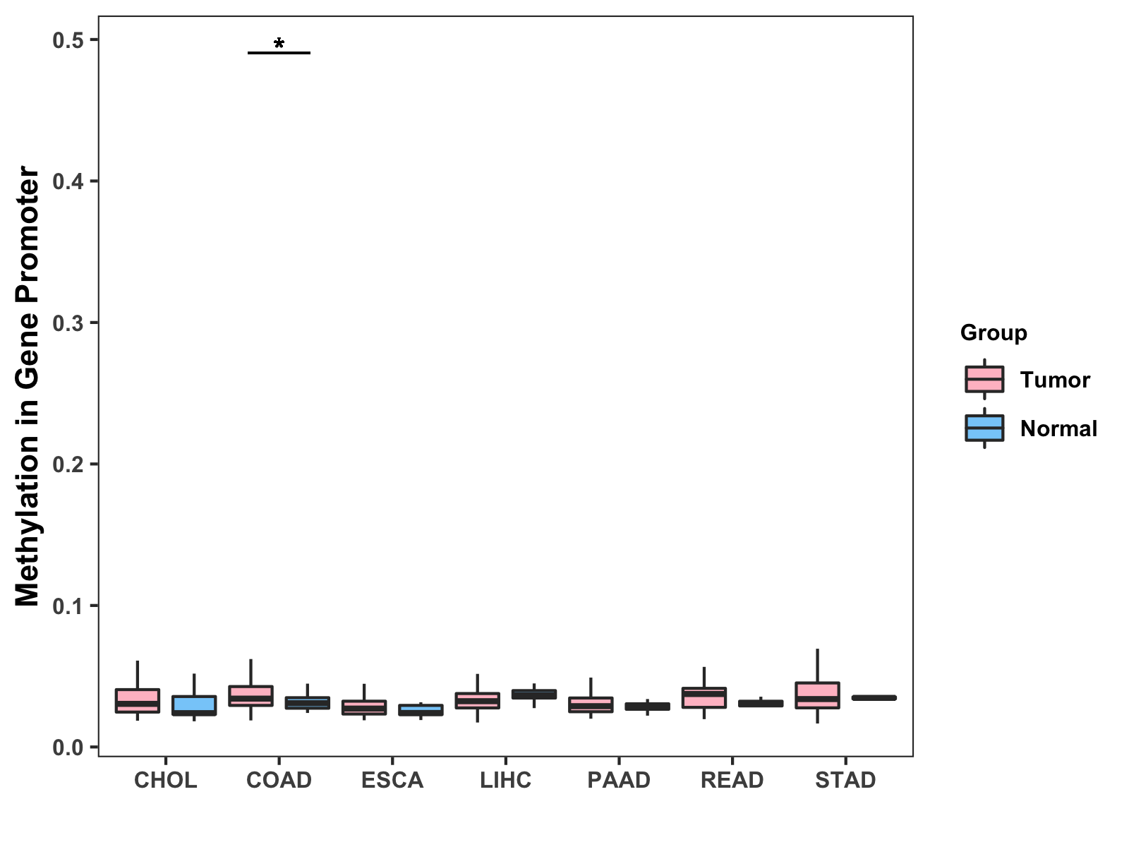 Boxplot of All Gastrointestinal Cancer ( * : 0.01-0.05 , ** : 0.005-0.01 , *** : 0.0001-0.005 , **** : < 0.0001 ) |