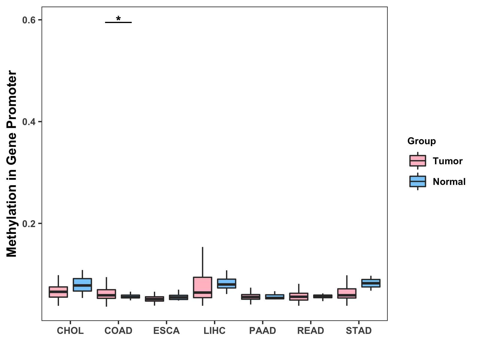 Boxplot of All Gastrointestinal Cancer ( * : 0.01-0.05 , ** : 0.005-0.01 , *** : 0.0001-0.005 , **** : < 0.0001 ) |
