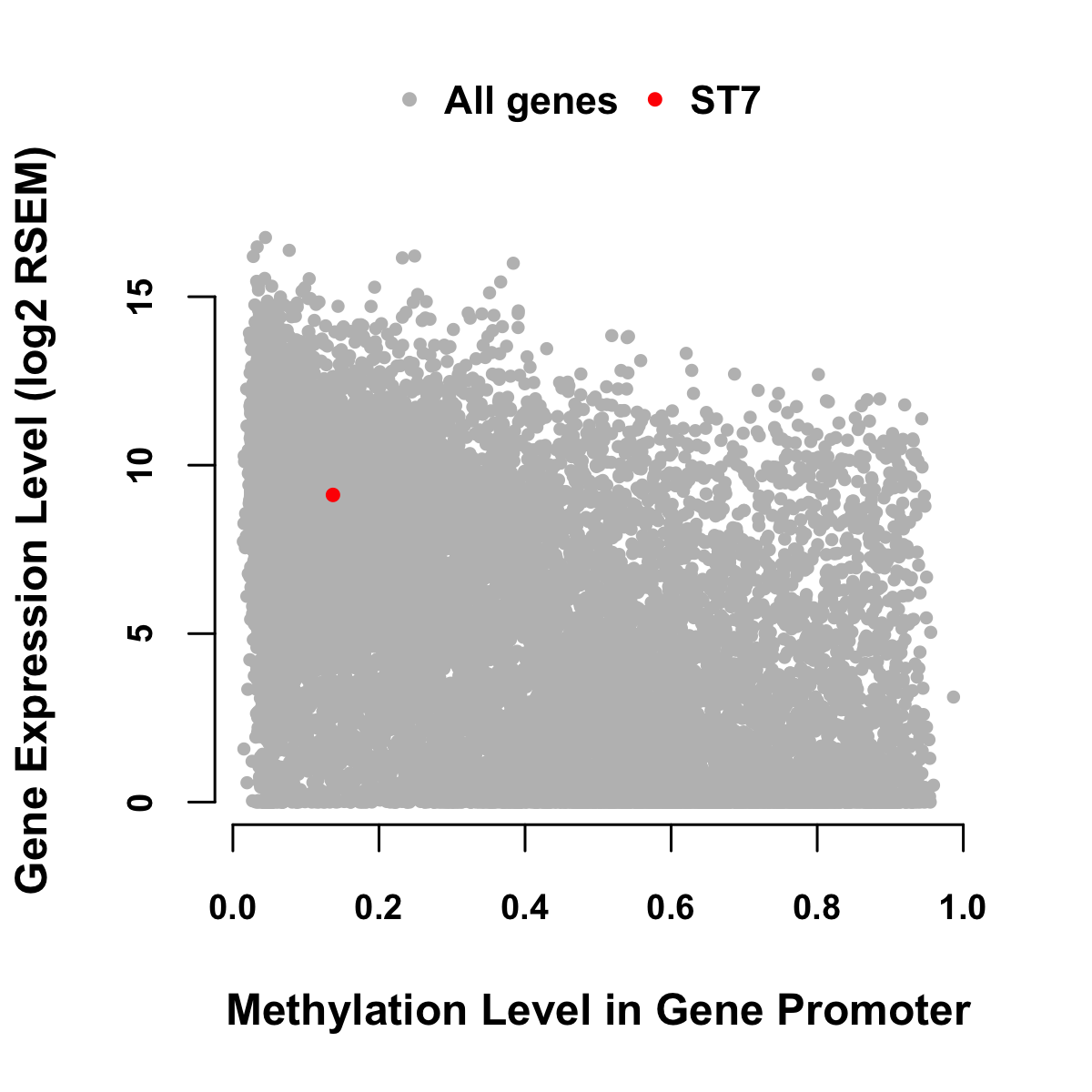 Expression-Methylation Scatter Plot in Colon Cancer Expression-Methylation Scatter Plot in Rectum Cancer