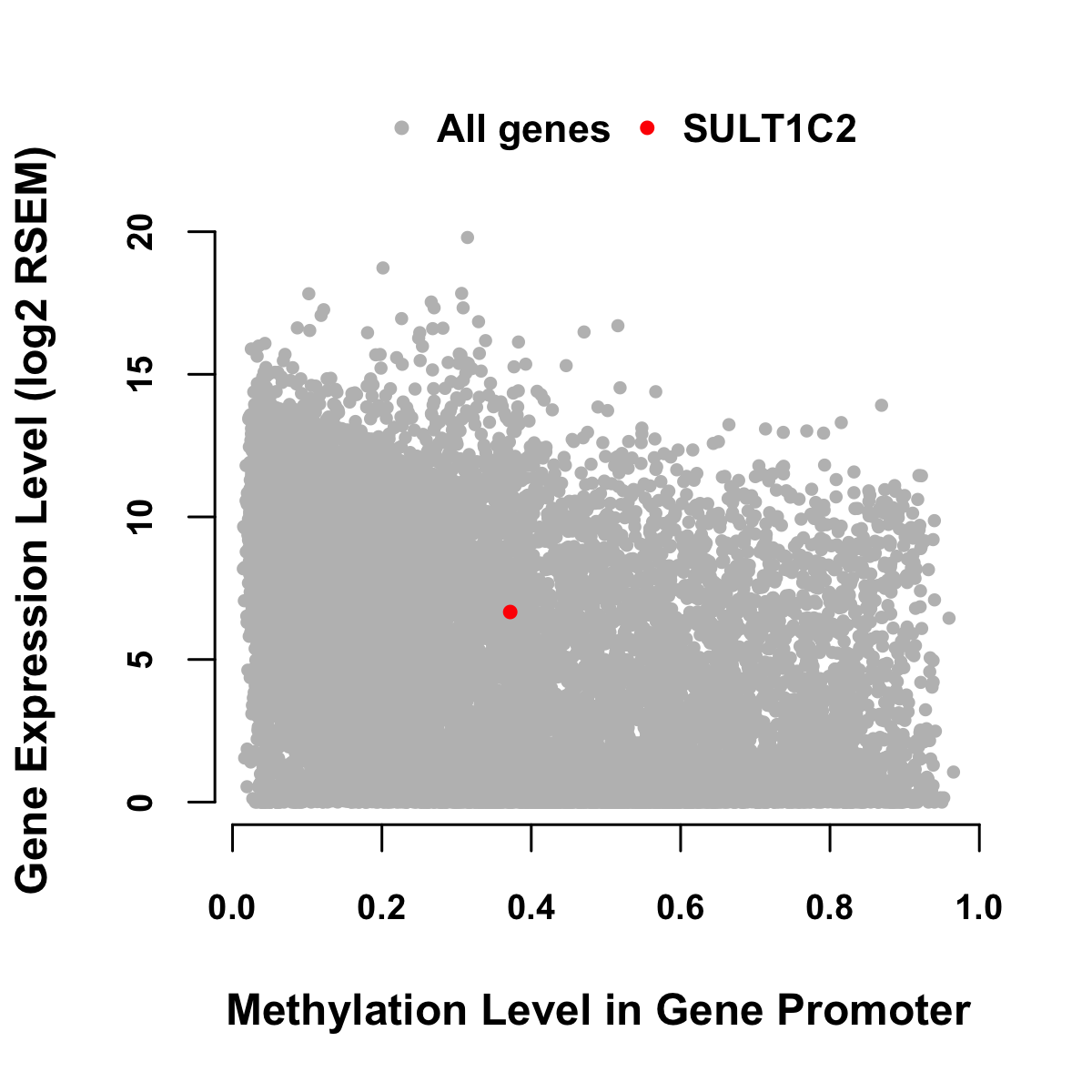 | Box Plot in Liver Cancer | Expression-Methylation Scatter Plot in Liver Cancer |