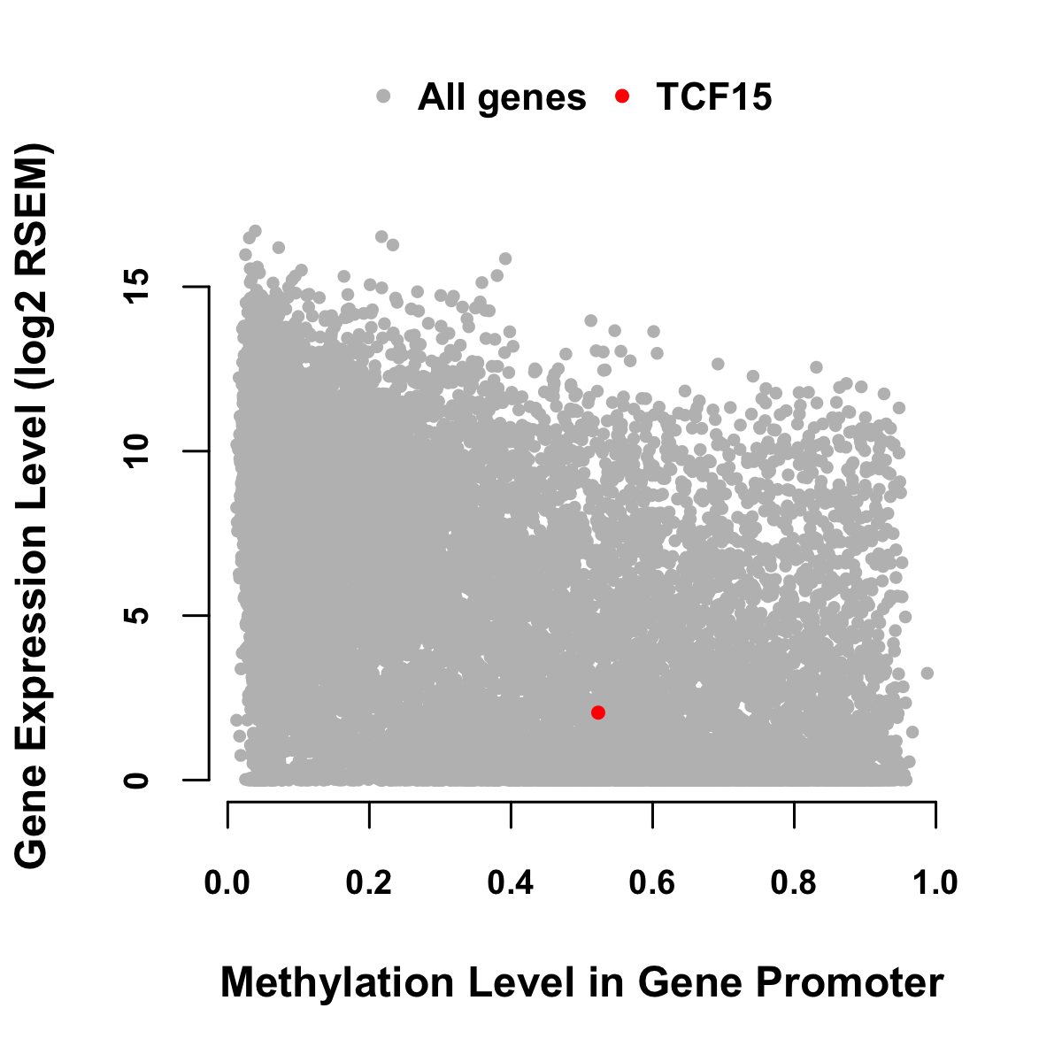 Expression-Methylation Scatter Plot in Colon Cancer Expression-Methylation Scatter Plot in Rectum Cancer
