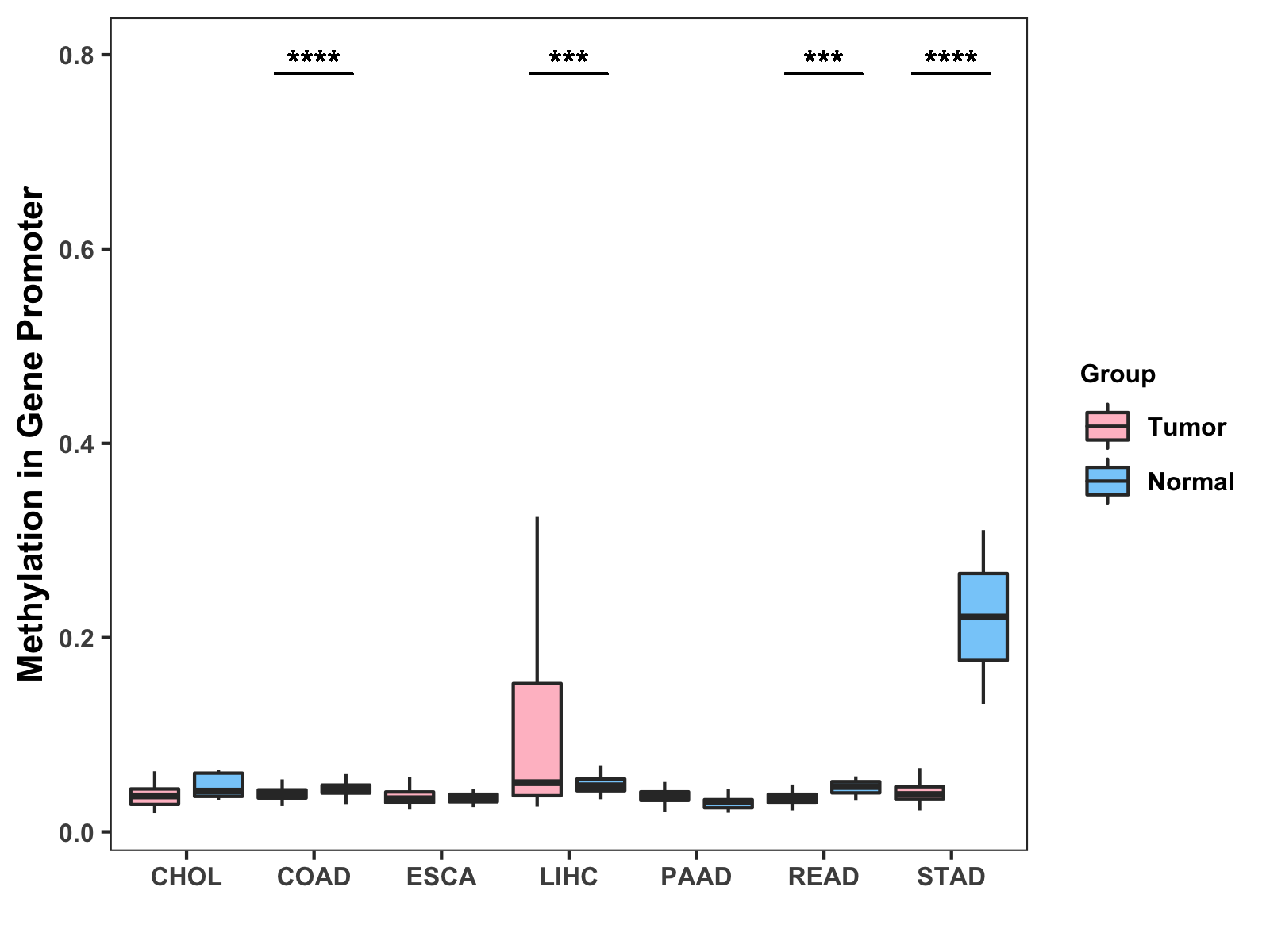Methylation Level in Colon Cancer MODERATE Methylation Level in Rectum Cancer MODERATE