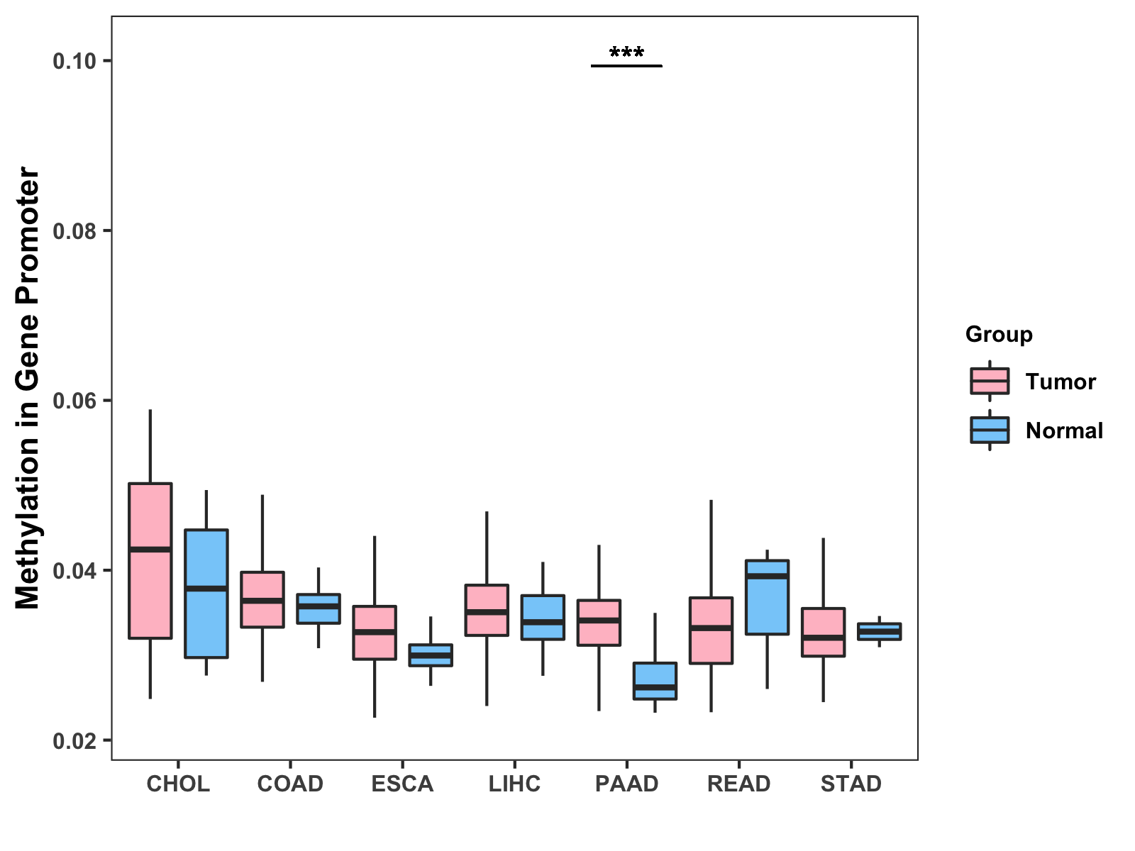 Methylation Level in Colon Cancer MODERATE Methylation Level in Rectum Cancer MODERATE
