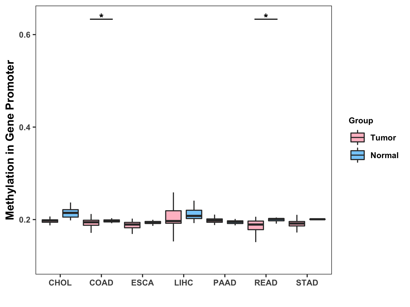 Methylation Level in Colon Cancer MODERATE Methylation Level in Rectum Cancer MODERATE