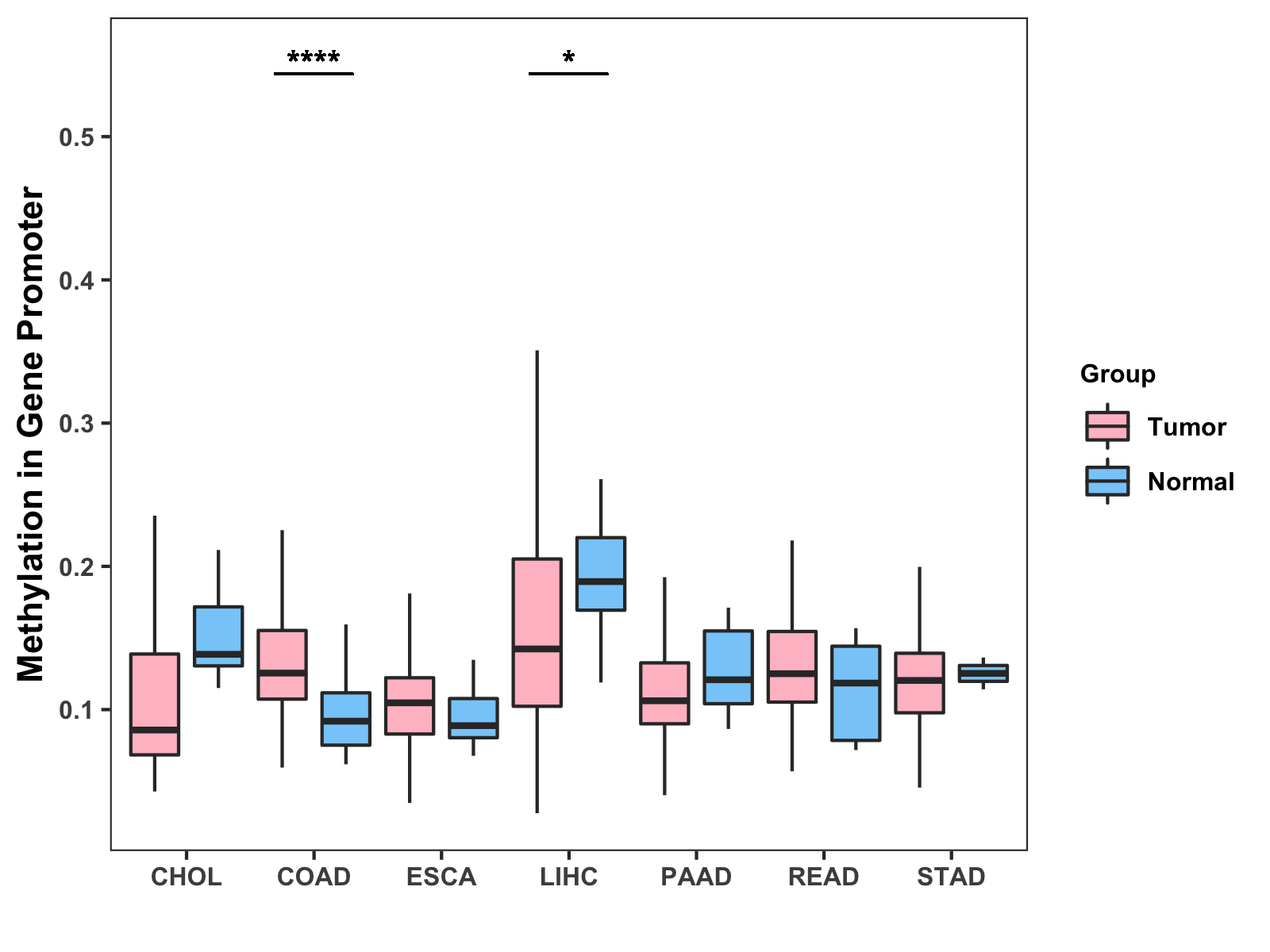 Methylation Level in Colon Cancer MODERATE Methylation Level in Rectum Cancer MODERATE